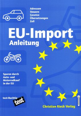 Dieses Buch wurde von der Stiftung Warentest empfohlen: Durch den Kauf von Autos oder Motorrädern im europäischen Ausland kann man bis zu 30% gegenüber der unverbindlichen Preisempfehlung sparen (auch bei deutschen Marken), und außerdem erhält man Motorräder ohne 100-PS-Limit. Diese Anleitung zeigt genau, wie man vorgehen muß: Sie nennt alle wichtigen Gesetze, Hintergründe, Übersetzungen, TÜV-Tips, über 100 Händleradressen und vieles mehr. Für Privatleute oder auch als zweites Bein für Unternehmer. Ca. 152 Seiten, 14 x 21 cm, ISBN 3-924043-18-3, EUR19,90 [Pressestimmen] [bestellen] |